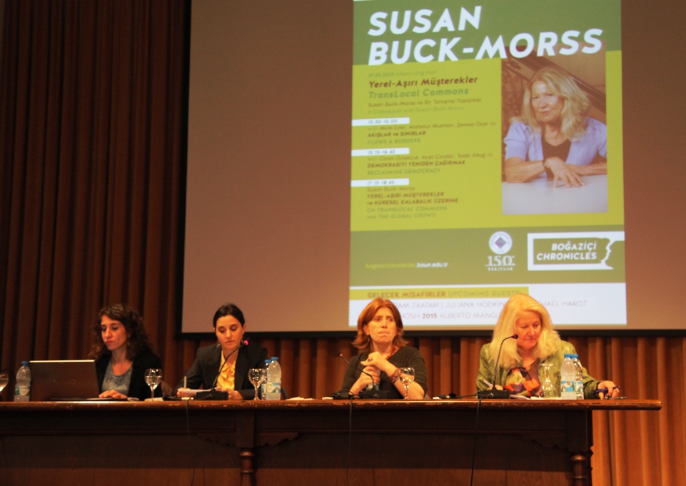 Susan Buck-Morss, Distinguished Professor of Political Philosophy at the CUNY Graduate Center, is the inspiration for the colloquium on TransLocal Commons that is held on the 31th of October at Albert Long Hall. Interventions by Mine Eder, Mahmut Mutman, and Şemsa Özar on “Flows and Borders” and Ceren Özselçuk, Seda Altuğ, and Ayşe Çavdar on “Reclaiming Democracy” all unfolded in the theoretical context provided by Buck-Morss’ initial questions. The colloquium is concluded with a lecture by Susan Buck-Morss, titled “TransLocal Commons and the Global Crowd”.